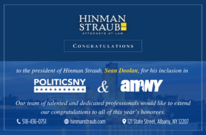 Hinman Straub congratulates Sean on this well-deserved honor and looks forward to his continued leadership on behalf of our clients and New York’s health care community.